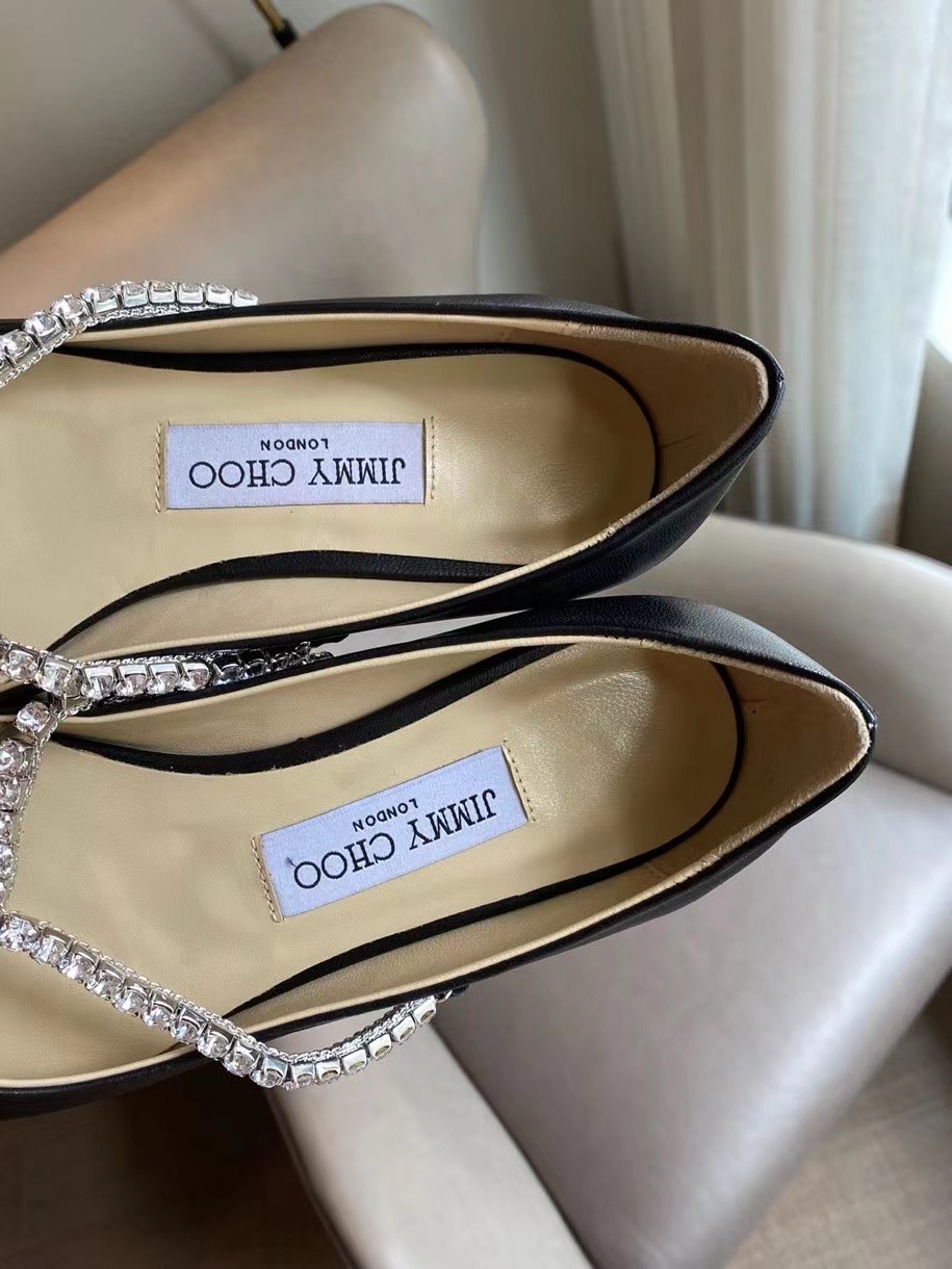Jimmy Choo Genevi Flats Leather with Crystal Chain